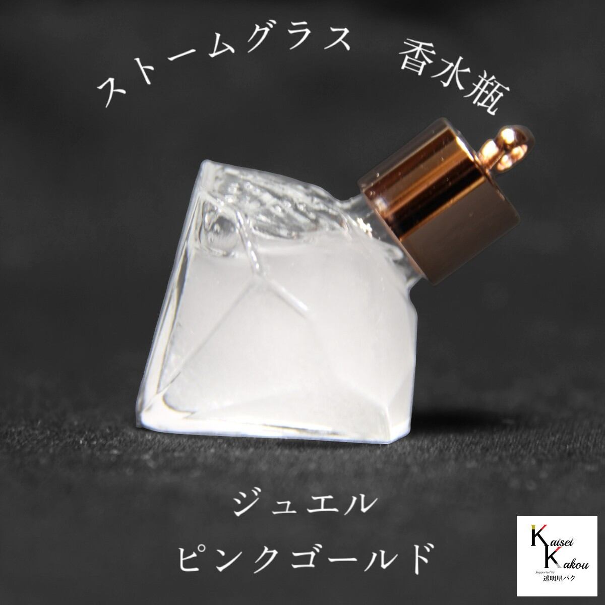 周りの気象環境の変化によって液体と結晶がユニークに変化します。 天気がわかる!「ストームグラス ペンダントトップ kousui3 ジュエル ピンクゴールド」 お天気管 フィッツロイ バロメーター 気象予報 ペンダント 気象計 ハンドメイドアクセサリー ハンドメイドネックレス プレゼント 贈り物 贈物 周りの気象環境の変化によって液体と結晶がユニークに変化します。 ジュエル(八角シングルカット)型香水ボトルのストームグラスです。 宝石を思わせるような高級感のある大人っぽいデザインが特徴です。 肉厚で高級感のあるミニサイズのガラスボトルです。 こちらのシリーズのデザインは(ハート・ダイヤ・ジュエル・ムーン)がございます。 こちらはピンクゴールド(ペンダントトップのみ)の商品です。 ペンダントトップのみ(ゴールド、シルバー、ピンクゴールド)・ネックレス付き(ゴールド、シルバー)・ストラップ付き(ゴールド、シルバー)がございます。 カン付きキャップは適度な重さと高級感のある真鍮キャップです。天面にカンがついています。お手持ちのチェーンやビーズなどと組み合わせてご使用いただけます。 【ボトル寸法・・・W:37.8mm L:37.8mm 高さ44.1mm 口内径:7.2Φ】 【カン付きキャップ込の寸法・・・W:37.8mm L:37.8mm 高さ55.0mm】 【カンの寸法・・・穴径:約3.8mm 外径:約6.6mm】 【内容量 ・・・約8mL】 【数量:1個 本体+キャップ】 【ボトル:ガラス、キャップ:真鍮メッキ(PPハイシート付)】 【日本製】 〇こちらのボトルは自立しません。 〇本体下部に、型由来の線状の跡があります。予めご了承ください。 〇口内径は個体により記載の数値より若干狭くなる場合がございます。 *天気が分かるストームグラス 中世のヨーロッパの航海士たちがこのビンの結晶をみて天気を予想し、航海に役立てたと言われています。 冬の雪や霜のときには、管の高い位置まで沈殿物が見え、とても白く、点状になります。 夏のとても天気がよい日には沈殿物は管の非常に低い位置に留まります。 結晶はごくゆっくりと変化します。年単位でお楽しみ下さい。 ----------------------------------------------------------------- ストームグラスは19世紀初頭にヨーロッパにて航海時に気象情報を予測するのに使われていました。 複数の化学薬品をアルコールに溶かしてガラス容器に詰めたもので、天候によって結晶の様子が変化すると言われています。 英国海軍のロバート・フィッツロイ提督が、この装置を詳細に研究したことから、別名「フィッツロイの気象計」とも呼ばれています。 実際には気象状況と液体内部の結晶化の関連性については、100%ではありません。 正確な気象情報を予測する為にはお使いできませんが、 周りの気象環境の変化によって液体と結晶がユニークに変化しますので、アクセサリーや観賞用のインテリアとしてお楽しみ下さい。 ----------------------------------------------------------------- ○環境によって、結晶が変化しますので、写真のような状態が保たれるわけではございません。夏の暑い日には一時的に透明になりますが、再び結晶は現れます。無くなることはありません。 ○直射日光を避けて保管してください。 ○加熱や急冷(電子レンジ)はご遠慮ください ○内用液にはアルコールや硝酸カリウム、塩化アンモニウムなどが入っております。火器の近くに置かないでください。小児の手の届かないところに保管し、誤飲しないようにお願いします。割れてしまい、手などについた場合には水でよく洗ってください。 〇万一、破損した場合は水拭きをしてください。内用液の匂いがしますが、吸引しても問題ありません。 〇環境への配慮から梱包資材にはリサイクル品を用いますので、あらかじめご了承ください。 5