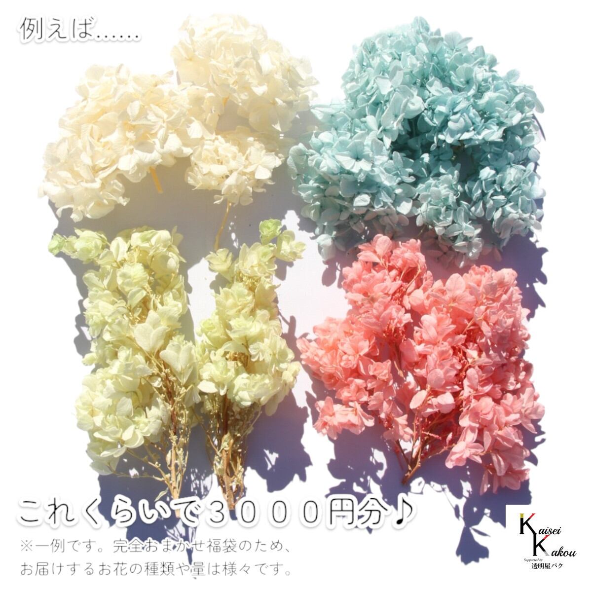 大地農園!プリザーブドフラワー「福袋 73000円分 千日紅・アジサイ・カスミ草」送料無料 花材 ハーバリウム 贈り物 オオチノウエン カシワバアジサイ ピラミッドアジサイ ゆめアジサイ ミニカスミ草 紫陽花 カスミソウ
